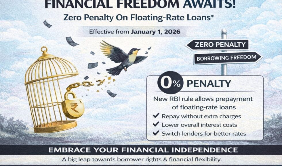 Effective from January 1, 2026 The Reserve Bank of India (RBI) has introduced a significant regulatory reform aimed at strengthening borrower rights and improving transparency in the lending ecosystem. Effective January 1, 2026, banks and Non-Banking Financial Companies (NBFCs) will no longer be permitted to levy prepayment or foreclosure charges on most floating-rate loans extended […]